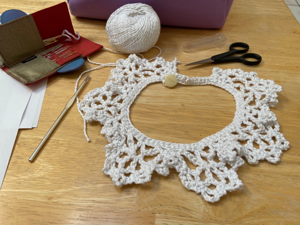 Die metallfarbene Häkelnadel glitt an der weißen Wolle entlang, die mit feinen silbernen Fäden durchsetzt war. Masche um Masche entstand zwischen meinen kalten Fingern ein Muster, das so vertraut durch Bilder und Beschreibungen war während ich aufmerksam den Berichten des Radiomoderators auf NPR (National Public Radio) zuhörte. Ruth Bader Ginsburg, die Richterin am US-amerikanischen Obersten Gerichtshof gewesen war, war am Abend von Rosh Hashanah (18. September) verstorben. Gerade hatte ich noch an meine jüdischen Freunde und Bekannte einen Gruß zum jüdischen Neujahrsfest versandt, als die Nachricht wie ein kalter Hagelschauer über dem jüdisch geprägten New Yorker Umfeld hereinbrach. Auch bei mir saß der Schock tief, denn seit Jahren war diese Frau für mich in ihrer Arbeit und ihrem Engagement um Gleichberechtigung und ein gerechteres juristisches System ein großes Vorbild. Nun griff ich zur Häkelnadel. Mit jeder neuen Masche entstand vor meinen Augen eine Nachahmung des Spitzenkragens, den sie über ihrer Richterrobe getragen hatte. Diese Tätigkeit gab mir die Möglichkeit meiner Trauer Ausdruck zu verleihen und ihr dadurch etwas näher sein zu können.