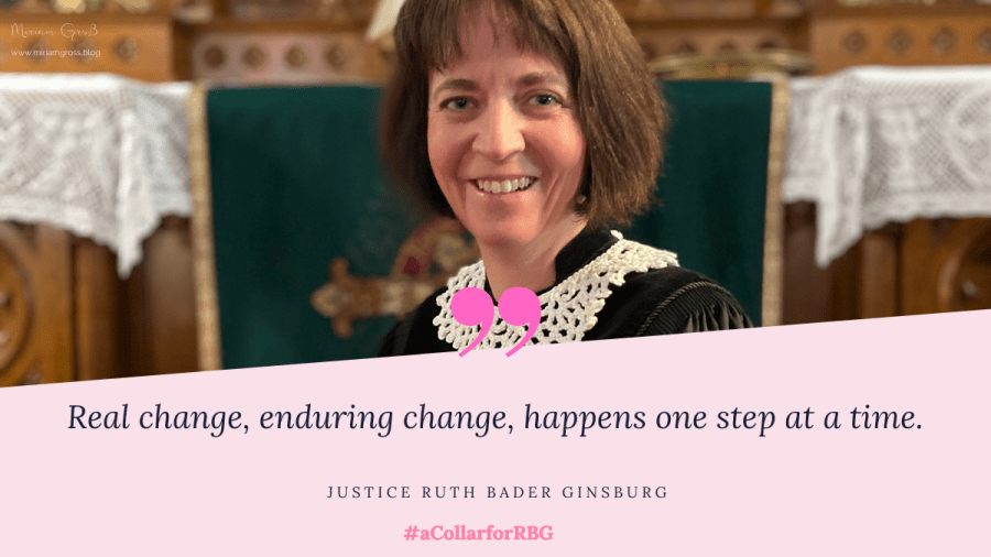 Ich würde mich sehr freuen, wenn ihr ebenso ein Zeichen setzten würdet, dass auch ihr engagiert seid um Gleichberechtigung und Gerechtigkeit. Wenn ihr könnt, so tragt ebenso ein solches #GinsburgCollar über eurem Kleid, Talar, Bluse oder Hemd. Wenn ihr könnt, dann postet ein Bild unter #ACollarforRBG und #RBG