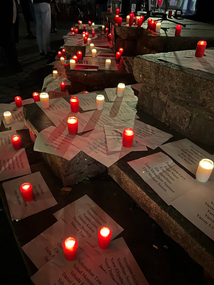 After a small pause I stepped off the stone paved plateau. Dustin, a young politician and German Jew, lit a candle in a red protective cover, which we set on graves and places of mourning to show our grief. With a whispered „Danke“ and a slight nod he laid it into my outstretched hands. I cradled the candle in my hands as I searched for an appropriate spot to set it into the sea of sorrowful lights.