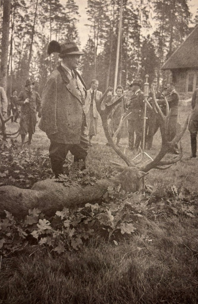 The label on the German herbal liquor „Jägermeister“ states 1878, but this date is the founding of the original vinegar factory. Curt Mast, son of the company’s founder, shifted the production away from vinegar to spirits and wines. In 1934 he invented the famous liquor. It was the year, in which Hermann Göring was nominated „Reichsjägermeister“ to be the highest „professional hunter“ in Germany – the term Jägermeister hadn’t been used for centuries. Just one year later, Curt Mast introduced his new herbal liquor and named it after Göring, whom he knew well. The design of the bottle was held in green with a deer head and cross. There are photographies of Hermann Göring as Reichsjägermeister with his prey showing huge deer antlers. Many therefore even called the herbal liquor „Göring-Schnaps“. (1)