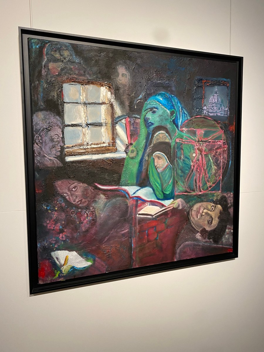 Bevor ich ins Grübeln verfallen konnte, holte mich die Künstlerin Marion Albrecht in meinen Gedanken ab, indem sie Element um Element von der bekannten Darstellung Luthers aus das Leben und Wirken Caritas Pirckheimers, der Äbtissin des Klarissenklosters ausführte. Eine völlig neue Gedankenwelt eröffnete sich mir bei dieser Ausstellungseröffnung, die Frauen, ihre Lebensgeschichten und ihre Berufung zum Mittelpunkt von Kunst und Geschichte aus katholischer Perspektive in den Mittelpunkt rückten.