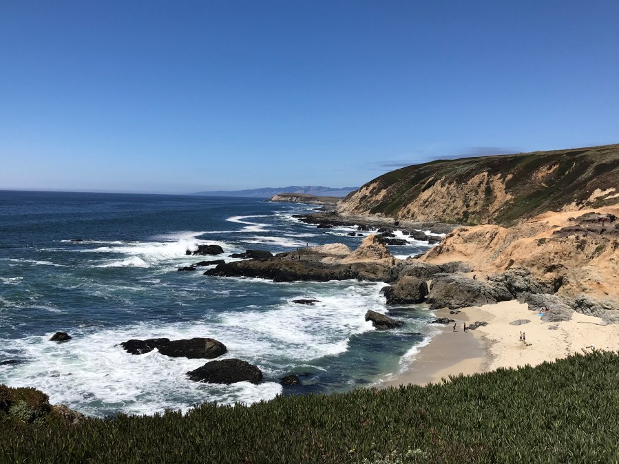 Ein Ausflug führte uns an einen wunderschönen Strand bei Bodega Bay, Sonoma County, der direkt an der Migrationsroute von Grau- und Blauwalen lag. Der kleine Strandabschnitt schmiegte sich sanft in eine Bucht und gab unseren Kindern die Möglichkeit auf samtweichen, hellgelben Sand spielen zu können. Mit dem Einsetzen der Ebbe wurden immer mehr Teile des Strandes sichtbar, die vorher vom Wasser verdeckt worden waren.